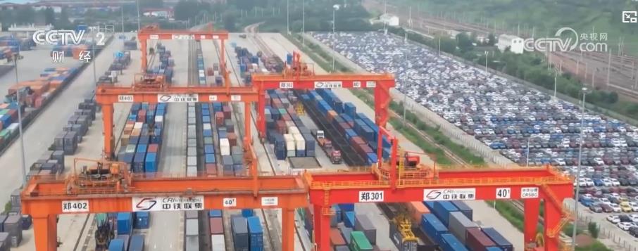 在中歐班列(鄭州)的貨場,一排排大型集裝箱碼放整齊,等待著中歐班列的到來,在這里,進出口貨物的裝卸貨作業(yè)24小時不停歇。記者了解到,今年以來,除了家電、布料等貨品外,搭乘中歐班列(鄭州)出口的商品中,新能源汽車、鋰電池、光伏產(chǎn)品等綠色化、高端化的產(chǎn)品占比越來越大。截至目前,這里的出口貨物涉及種類達上萬種,業(yè)務(wù)輻射40多個國家140多個城市,境內(nèi)外合作伙伴超過6000家。采訪中,一家物流企業(yè)的負責人就告訴記者,依托穩(wěn)定、便捷的中歐班列,今年上半年,他們承運的出口貨值達到150億元,相比去年同期增長約20%。