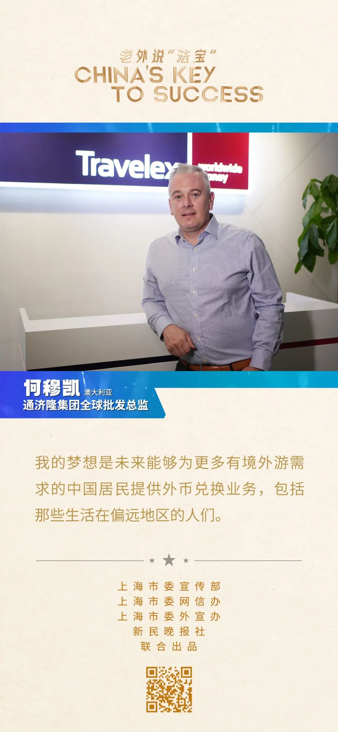 “我的夢(mèng)想是未來(lái)能夠?yàn)楦嘤芯惩庥涡枨蟮闹袊?guó)居民提供外幣兌換業(yè)務(wù),包括那些生活在偏遠(yuǎn)地區(qū)的人們?!?/strong>