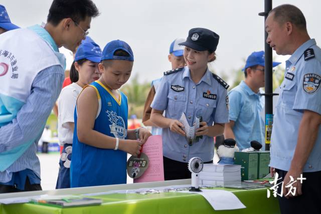 保護(hù)紅樹(shù)林生態(tài)系統(tǒng)國(guó)際日,民警們?cè)谡拷袇^(qū)擺攤,科普紅樹(shù)林保護(hù)知識(shí)。
