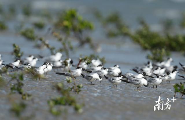 成群的小鳥(niǎo)在紅樹(shù)林覓食。