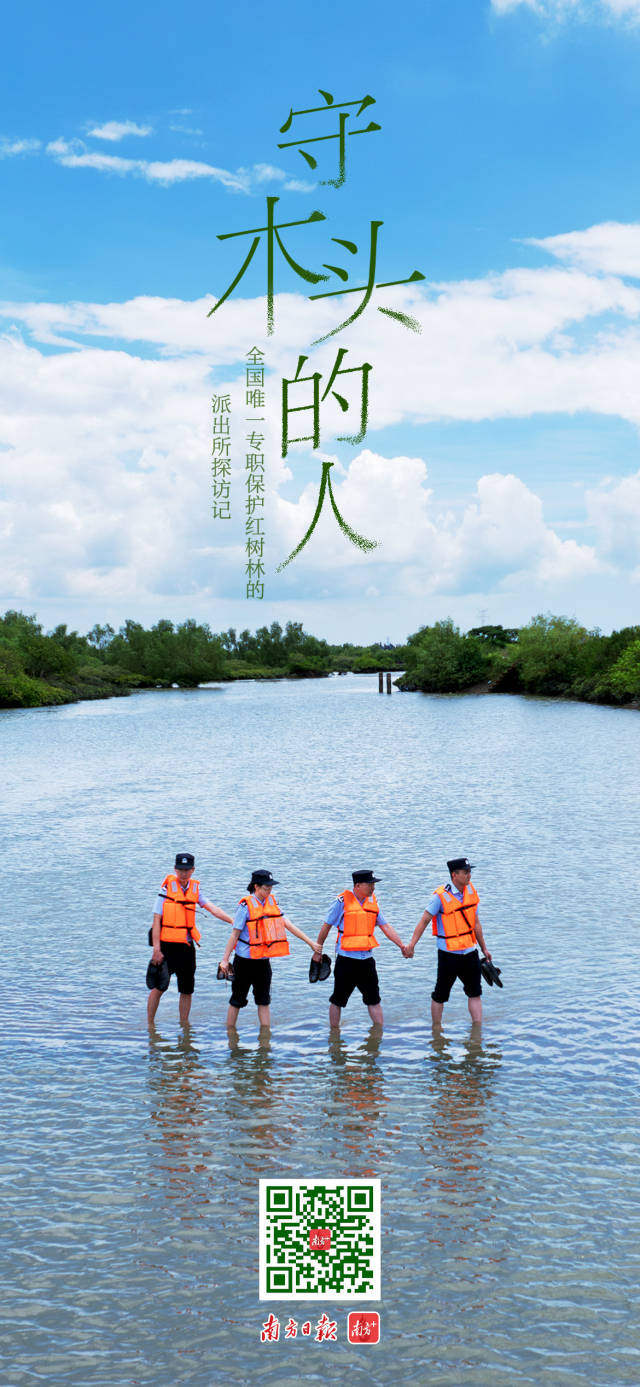 扎根,紅樹(shù)林以這樣的方式與大地糾纏牽絆;楊健宏、吳八、李明霖、侯小嬪4名民警則把根扎在了紅樹(shù)林,成為了守木頭的人。