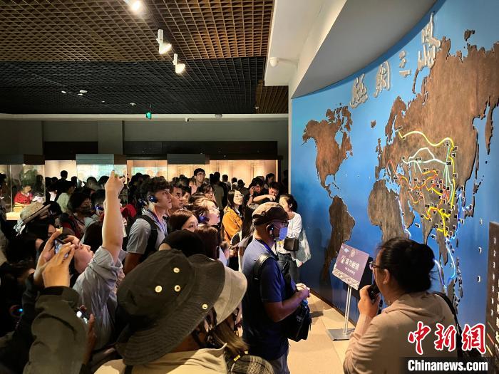8月18日,臺(tái)胞在甘肅省博物館絲綢之路文明展廳參觀。王牧雨 攝