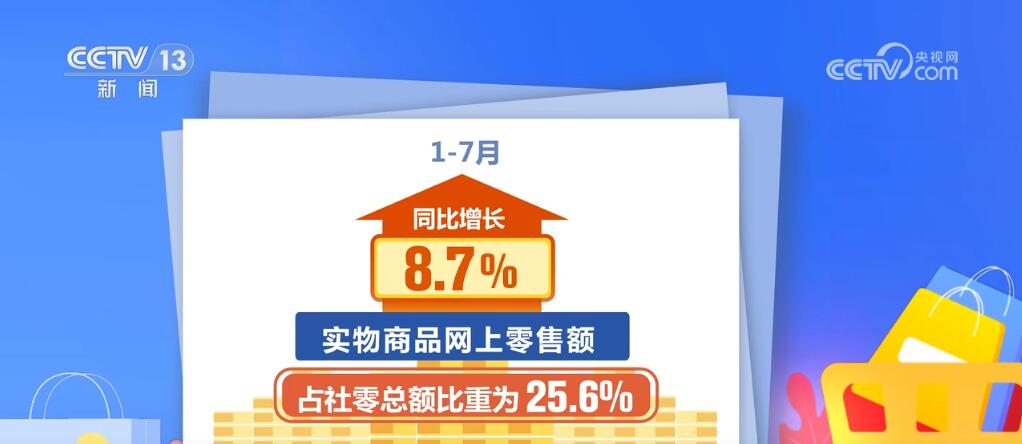 同時,線上消費增勢較好。1—7月,實物商品網(wǎng)上零售額同比增長8.7%,占社零總額比重為25.6%。7月份,我國快遞業(yè)務(wù)量達(dá)142.6億件,同比增長22.2%。