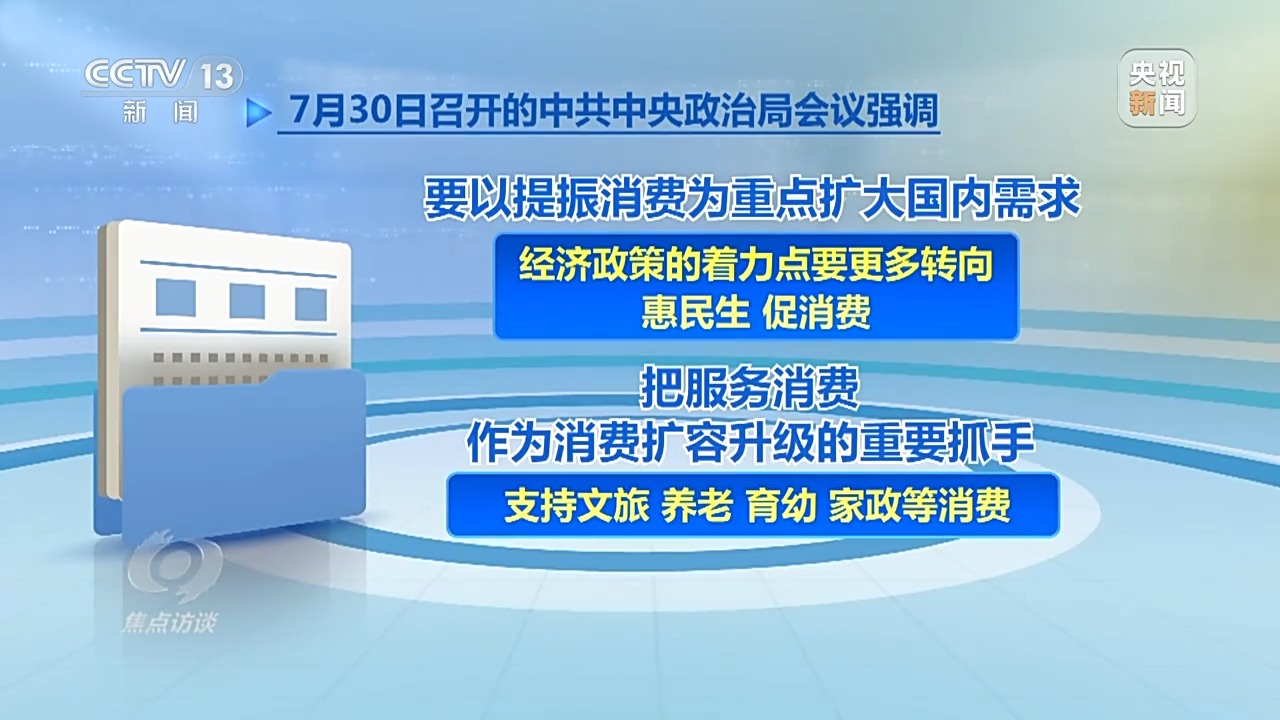 服務(wù)消費(fèi)是釋放消費(fèi)潛力的重要力量。7月30日召開(kāi)的中共中央政治局會(huì)議強(qiáng)調(diào),“要以提振消費(fèi)為重點(diǎn)擴(kuò)大國(guó)內(nèi)需求,經(jīng)濟(jì)政策的著力點(diǎn)要更多轉(zhuǎn)向惠民生、促消費(fèi),把服務(wù)消費(fèi)作為消費(fèi)擴(kuò)容升級(jí)的重要抓手,支持文旅、養(yǎng)老、育幼、家政等消費(fèi)。”國(guó)務(wù)院于8月3日印發(fā)《關(guān)于促進(jìn)服務(wù)消費(fèi)高質(zhì)量發(fā)展的意見(jiàn)》,提出“著力提升服務(wù)品質(zhì)、豐富消費(fèi)場(chǎng)景、優(yōu)化消費(fèi)環(huán)境,以創(chuàng)新激發(fā)服務(wù)消費(fèi)內(nèi)生動(dòng)能,培育服務(wù)消費(fèi)新增長(zhǎng)點(diǎn)”。這是我國(guó)首次專(zhuān)門(mén)就服務(wù)消費(fèi)發(fā)展作出系統(tǒng)全面部署的政策文件。