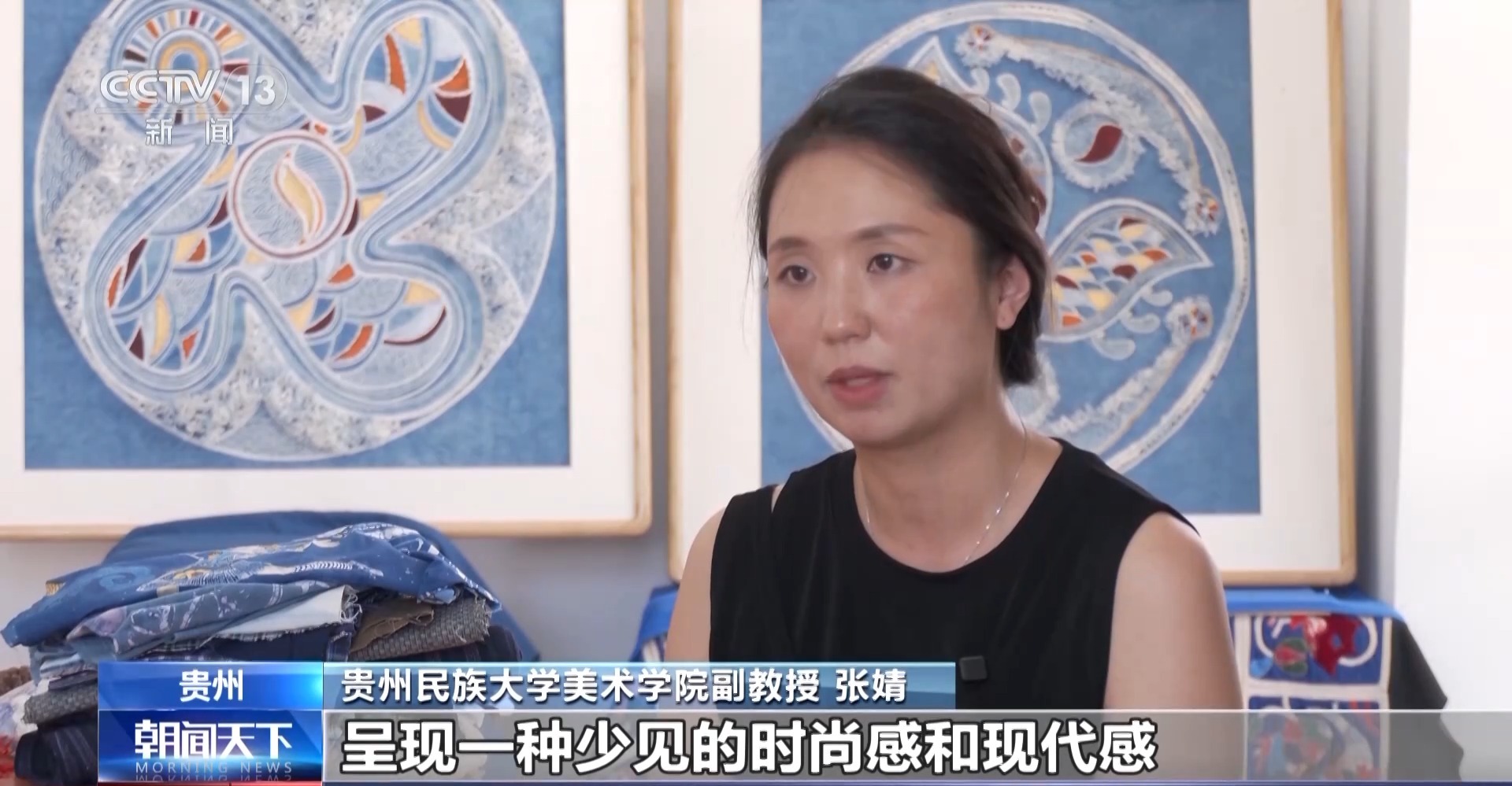 貴州民族大學(xué)美術(shù)學(xué)院副教授 張婧:在它的色調(diào)和質(zhì)感的對(duì)撞和對(duì)比下,使得劍河錫繡呈現(xiàn)一種少見的時(shí)尚感和現(xiàn)代感。