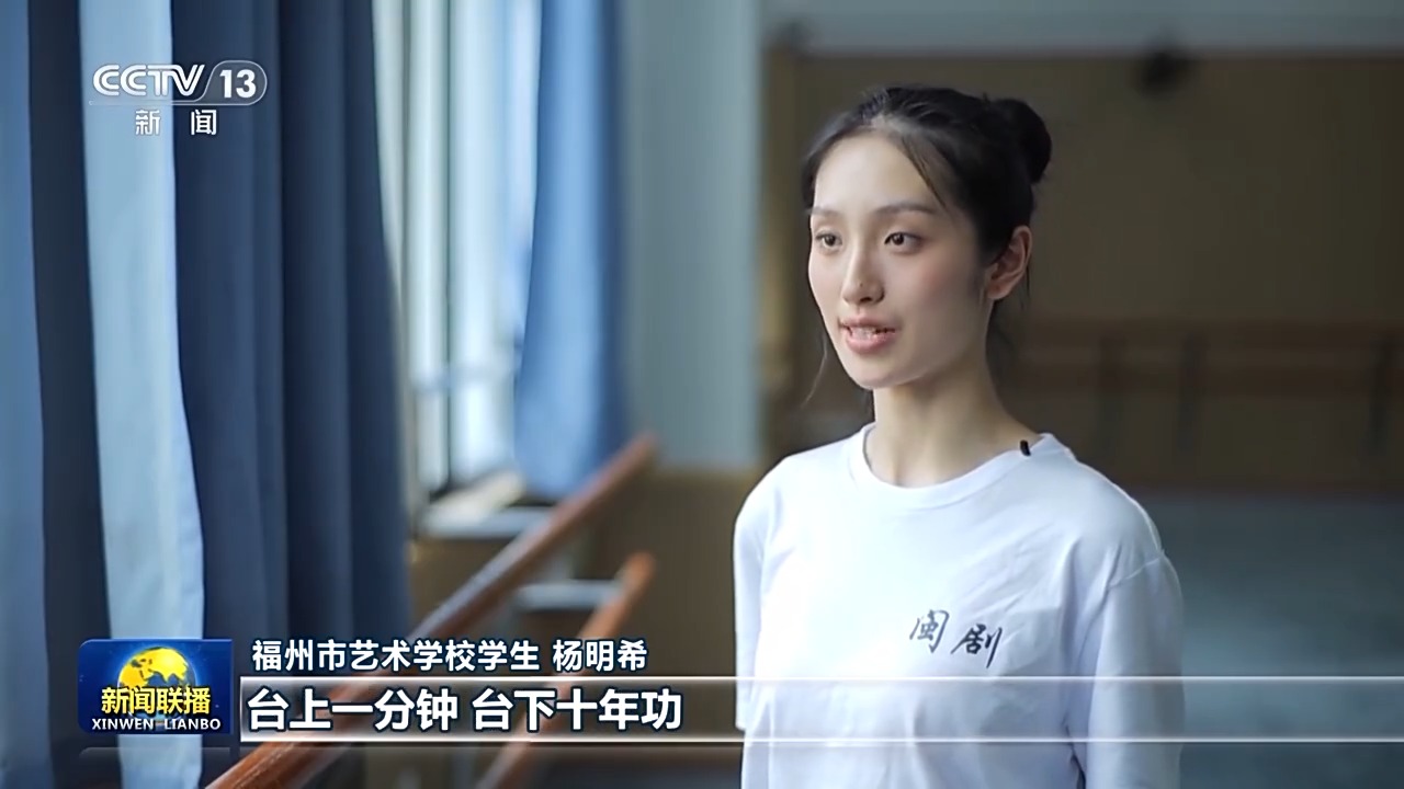 福州市藝術學校學生 楊明希:勤學苦練,振興閩劇,這八個字時刻提醒我們臺上一分鐘,臺下十年功。我們要學好文化,又要學好專業(yè),學閩劇一定要吃苦才能把基本功打?qū)崱?/p>