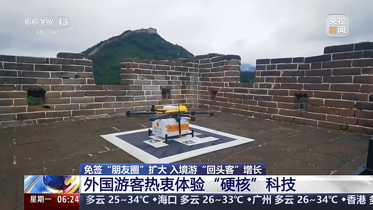 北京八達(dá)嶺長(zhǎng)城近期開通了無人機(jī)“送外賣”服務(wù),最快5分鐘,來自山下的酸梅湯、雪糕、創(chuàng)可貼等商品就能送到長(zhǎng)城上來。