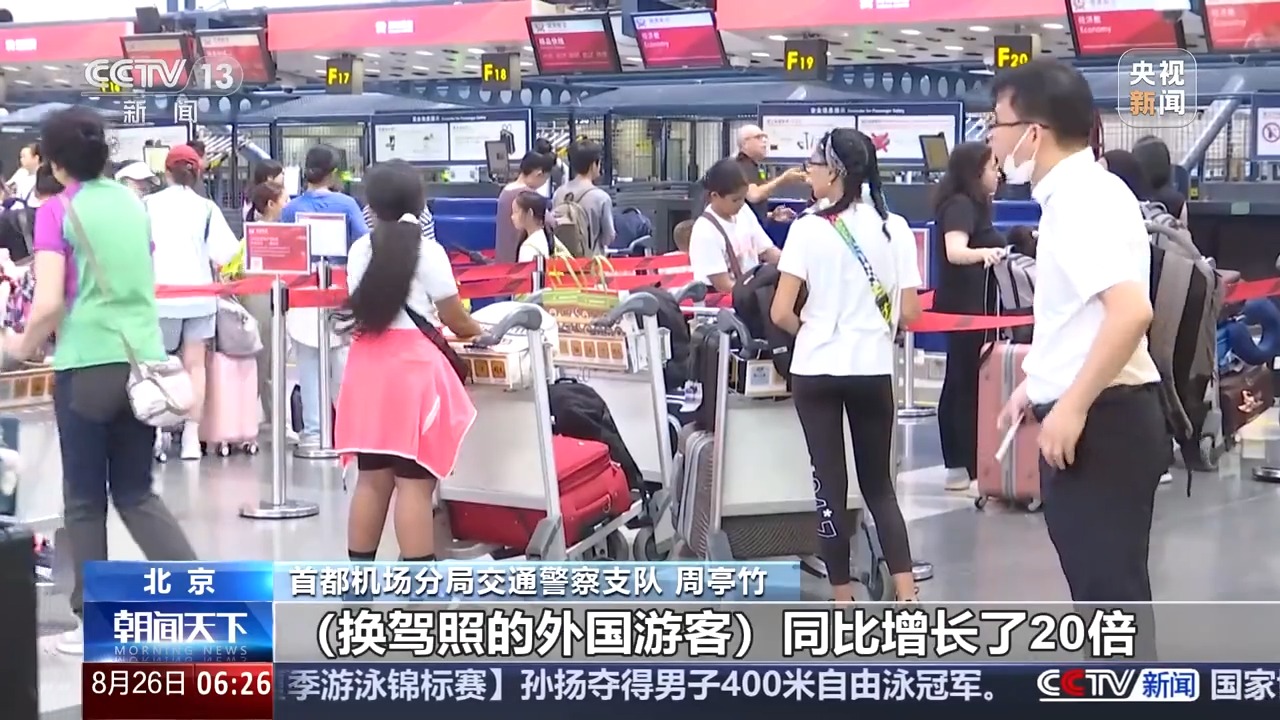 首都機(jī)場(chǎng)分局交通警察支隊(duì) 周亭竹:換駕照的外國(guó)游客同比要增長(zhǎng)了20倍。中國(guó)的臨時(shí)駕駛許可,他只可以開租賃的汽車,私家車是不能開的,我們?cè)诖翱跁?huì)提醒到他。