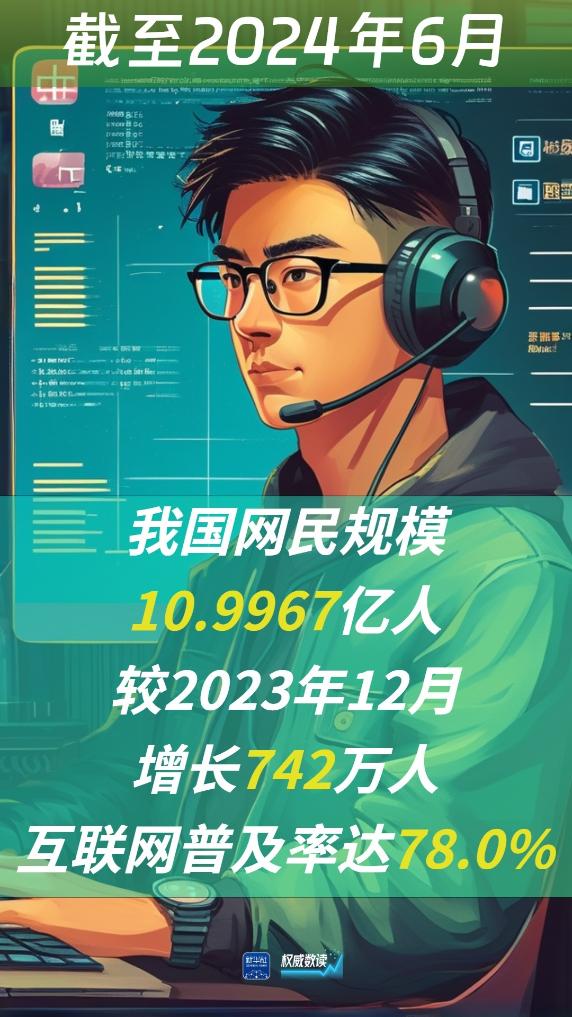 8月29日,中國互聯(lián)網(wǎng)絡(luò)信息中心(CNNIC)發(fā)布第54次《中國互聯(lián)網(wǎng)絡(luò)發(fā)展狀況統(tǒng)計報告》。報告顯示,截至2024年6月,我國網(wǎng)民規(guī)模近11億人(10.9967億人),較2023年12月增長742萬人,互聯(lián)網(wǎng)普及率達78.0%。