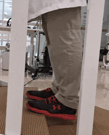 雙腳分開,雙手扶在墻面或扶手上,保證平衡。足跟緩慢抬起,停留一會(huì)兒,然后恢復(fù)至初始動(dòng)作。此為一個(gè)完整動(dòng)作。8~12次/組,做3組。