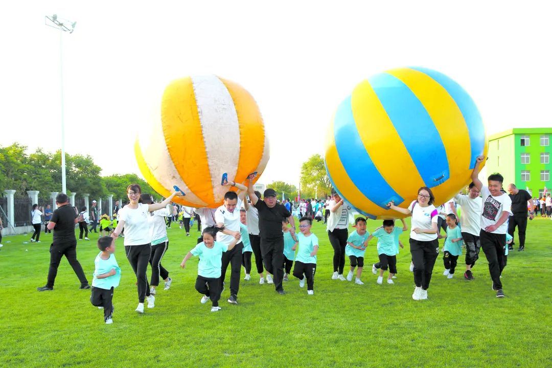 遼寧省鞍山市幼兒園組織幼兒和家長一起快樂做游戲。