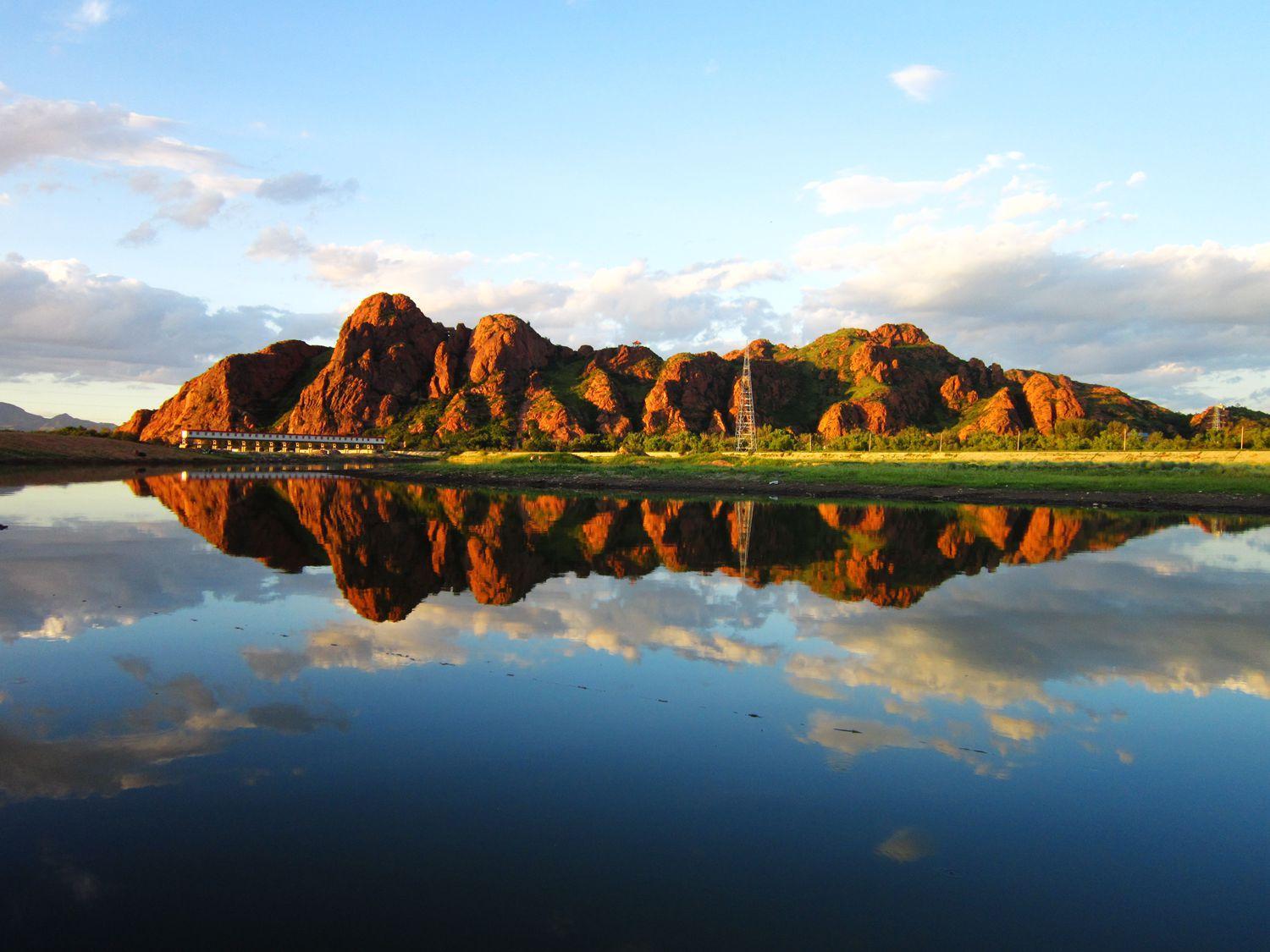 傳說在遠(yuǎn)古時(shí)期,九位仙女因觸犯天規(guī)而驚慌失措,不慎打翻了胭脂盒,那如霞似錦的胭脂如細(xì)雨般灑落在英金河畔,化作九座緋紅的山巒,蒙古語為“烏蘭哈達(dá)”,意思是紅色的山峰,從此這里便得名“紅山”,中華文明的起源如滿天星斗,紅山文化正是其中的璀璨一顆。