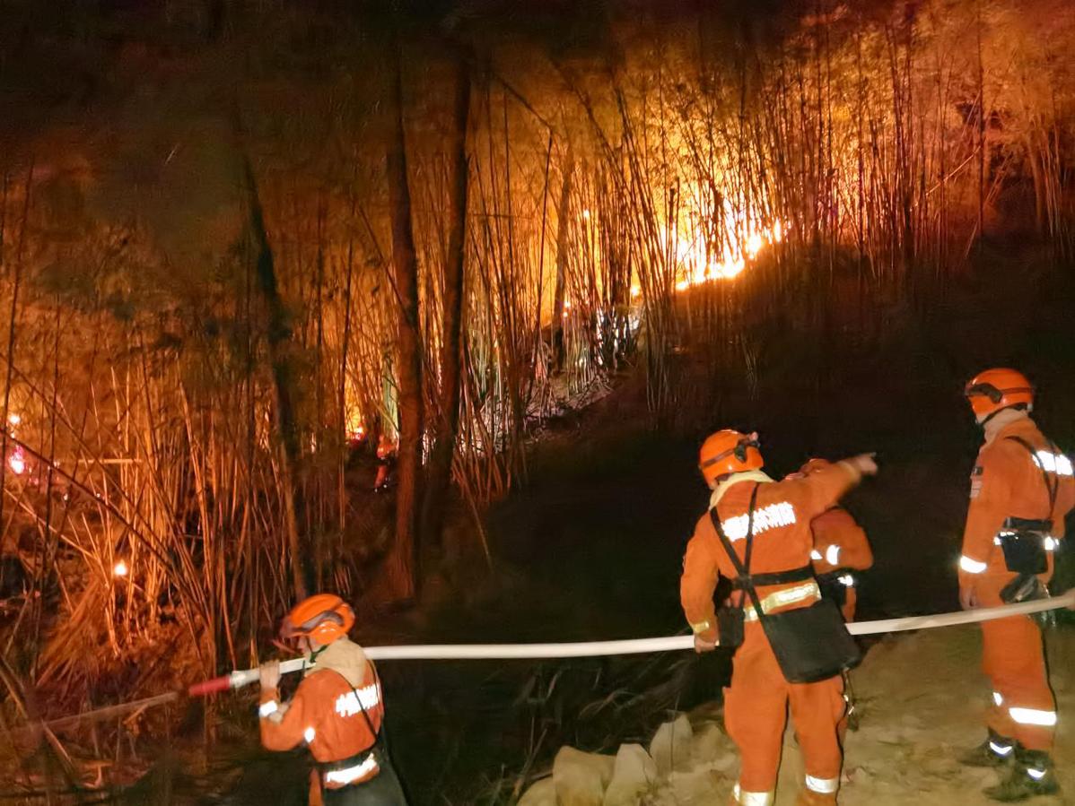 今年3月21日,甘南州夏河達(dá)麥鄉(xiāng)發(fā)生森林大火,大隊(duì)接總隊(duì)命令后迅速出動(dòng)近百名指戰(zhàn)員奔赴火場(chǎng)。