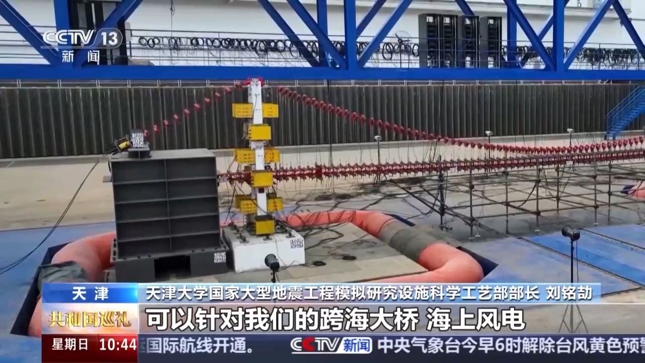 天津大學(xué)國家大型地震工程模擬研究設(shè)施科學(xué)工藝部部長 劉銘劼:我們這里面是世界上唯一的一套,可以實現(xiàn)水下雙臺地震、波浪、水流聯(lián)合模擬的一個試驗裝置,可以在3米水深下工作,可以針對我們的跨海大橋、海上風(fēng)電這些海上“超級工程”進(jìn)行更加真實的地震模擬研究。