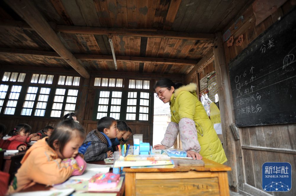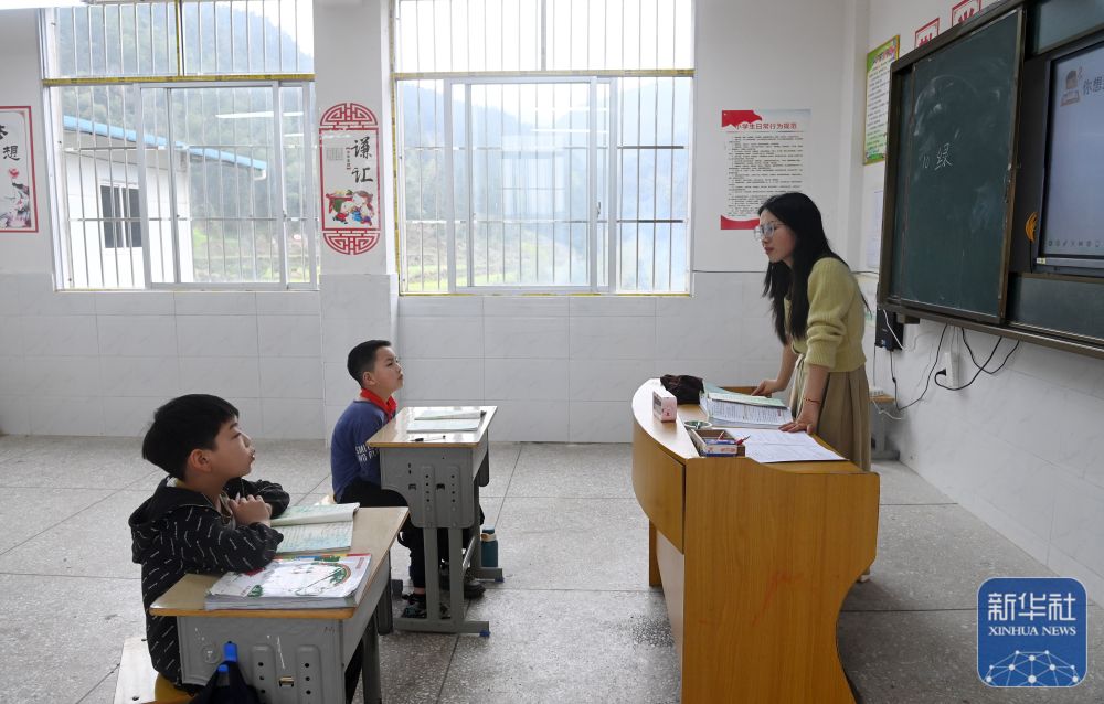 在廣西灌陽縣洞井瑤族鄉(xiāng)野豬殿小學(xué),“95后”老師趙艷在給學(xué)生上課(2024年3月27日攝)。