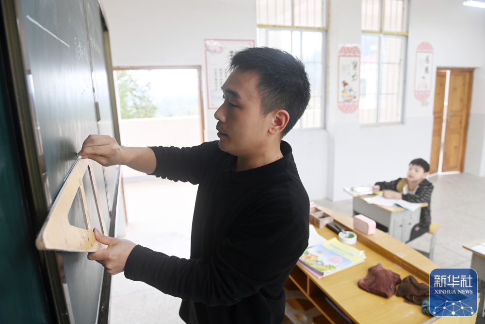 在廣西灌陽縣洞井瑤族鄉(xiāng)野豬殿小學(xué),“85后”老師李清東在給學(xué)生上課(2024年3月27日攝)。