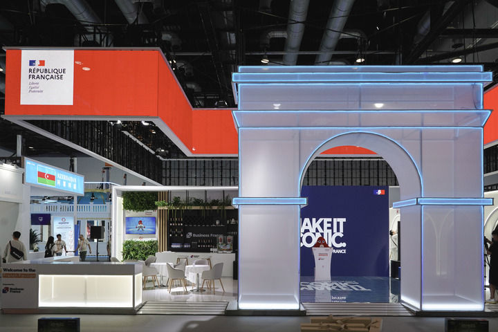 2024年9月11日在國(guó)家會(huì)議中心拍攝的主賓國(guó)法國(guó)展館。新華社記者 曹夢(mèng)瑤 攝