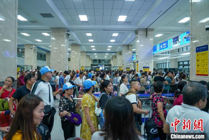 8月31日,旅客在中越邊境河口口岸排隊辦理通關手續(xù)。(河口出入境邊防檢查站供圖)