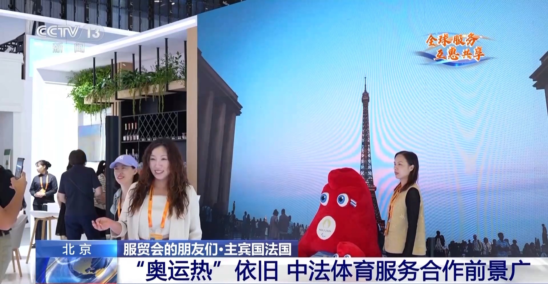 此次參會(huì),法國(guó)國(guó)家館設(shè)計(jì)了三大主題的展示和活動(dòng),體育是其中之一。記者在現(xiàn)場(chǎng)發(fā)現(xiàn),奧運(yùn)五環(huán)、巴黎奧運(yùn)會(huì)吉祥物“弗里熱”等元素依舊吸引了不少觀眾打卡拍照。娛樂文化與體育服務(wù)是服務(wù)貿(mào)易的重要領(lǐng)域。在本屆服貿(mào)會(huì)上,一些法國(guó)參展商也在尋求體育服務(wù)相關(guān)合作機(jī)會(huì)。
