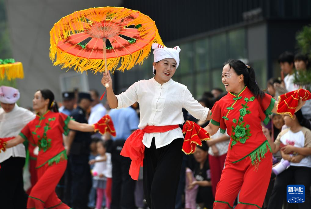 9月17日,在河北省石家莊市平山縣光祿山風(fēng)景區(qū),當(dāng)?shù)厝罕姙橛慰捅硌菅砀琛?/p>