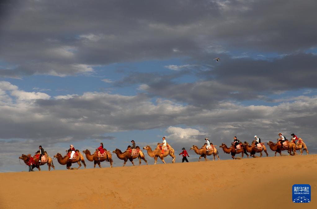 9月15日,游客在甘肅省敦煌市鳴沙山月牙泉景區(qū)游覽。