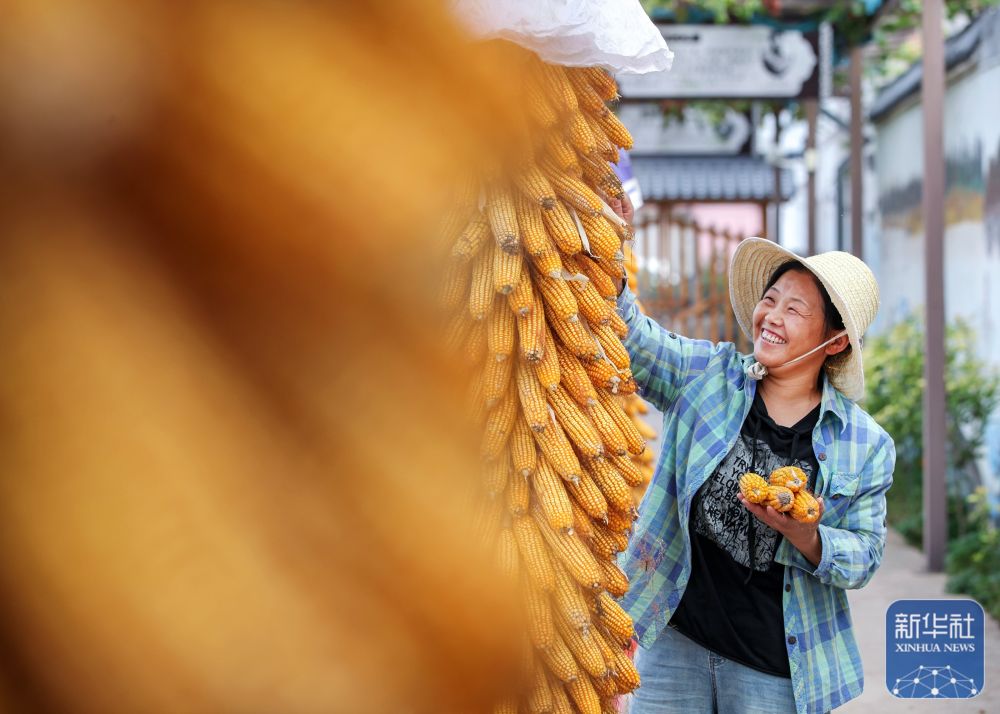 9月21日,山東省青州市黃樓街道后坡村農(nóng)民在晾曬玉米。