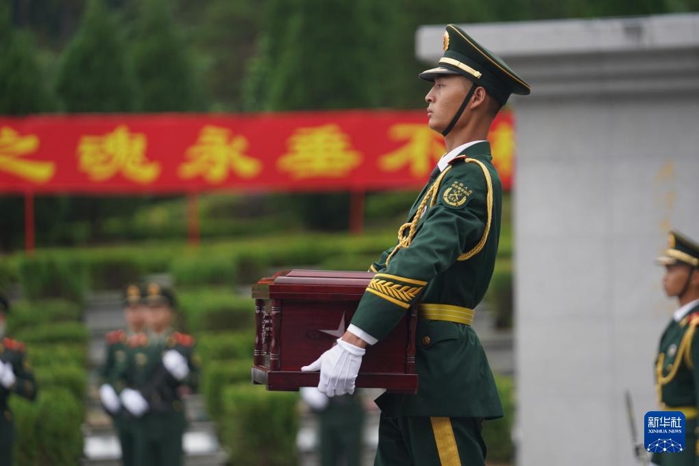 9月25日,禮兵抬黃公略烈士棺槨至烈士墓穴。新華社記者 周密 攝