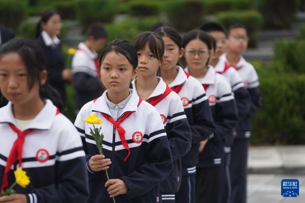 9月25日,兒童向烈士墓獻花。新華社記者 周密 攝