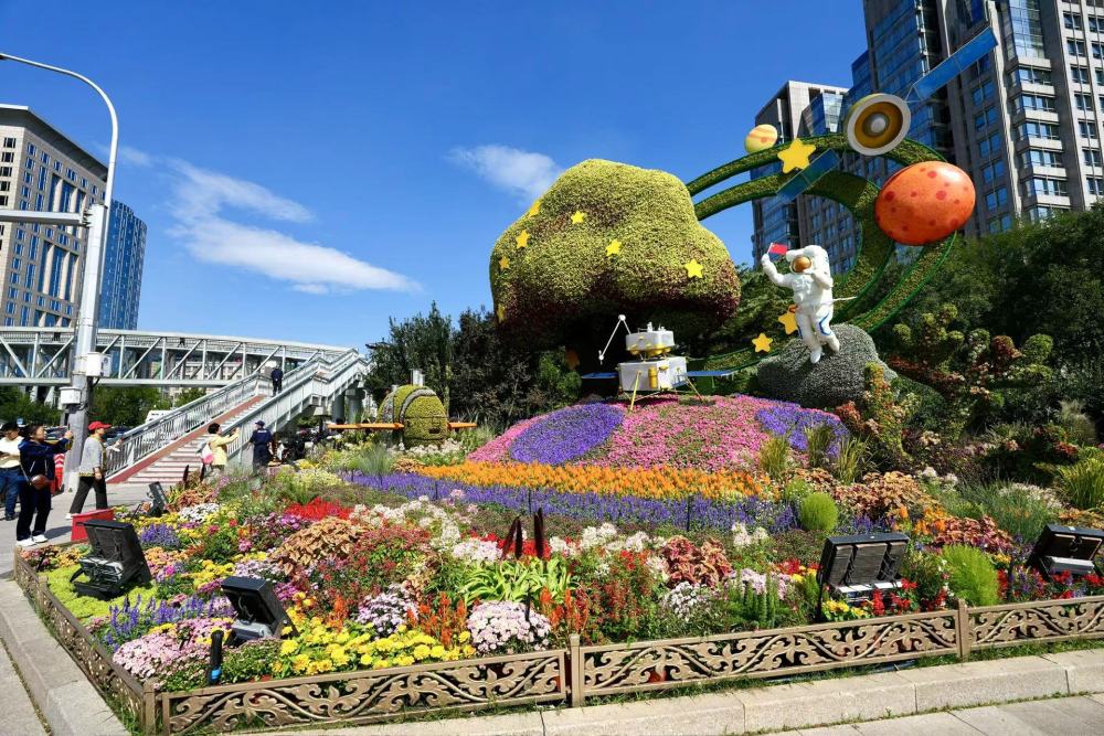 在天安門廣場(chǎng)和長(zhǎng)安街沿線邂逅花壇,是無(wú)數(shù)人國(guó)慶游的“打開方式”。9月25日,“祝福祖國(guó)”巨型花籃亮相天安門廣場(chǎng)中心,10組立體花壇扮靚長(zhǎng)安街沿線。