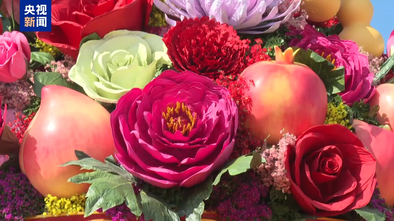 北京市園林綠化局城鎮(zhèn)綠化處二級(jí)調(diào)研員 宋學(xué)民:首次增加了蔬菜,變成了蔬果花籃,里面加上了富有吉祥寓意的南瓜、葫蘆,還有紅辣椒,紅紅火火,象征著豐收。再加上蔬菜、水果和鮮花,構(gòu)成了蔬果花籃,寓意繁花似錦,蔬果飄香。