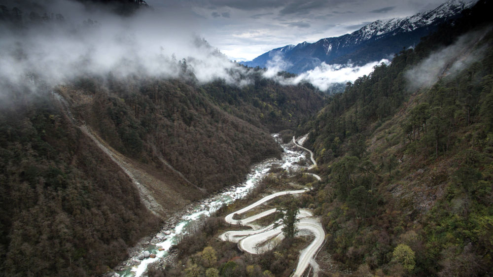2017年3月30日,西藏墨脫公路上空云霧繚繞。2013年,墨脫公路正式通車,實現(xiàn)我國“縣縣通公路”。新華社記者 普布扎西 攝