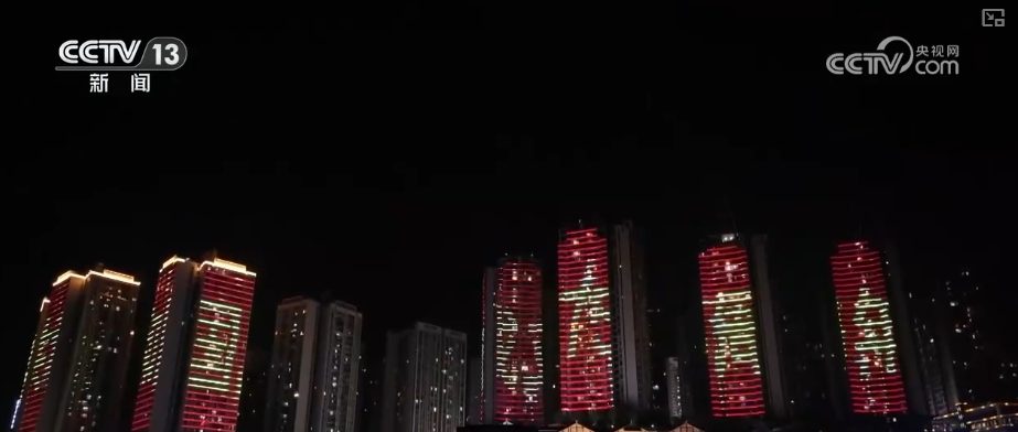 在重慶市奉節(jié)縣、永川區(qū)等地,紛紛利用城市樓宇開啟國慶燈光秀。變換多彩的燈光和圖案,將建筑物裝點(diǎn)得美輪美奐,營造出祥和喜慶的節(jié)日氛圍。