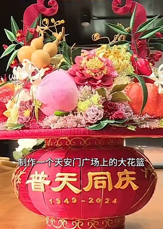 “祝福祖國”巨型花籃已亮相天安門廣場