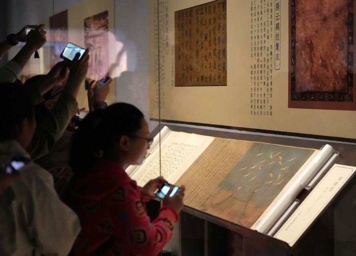 一群仙鶴翱翔空中,如云似霧,姿態(tài)百變,蔚為大觀。國慶前夕,古畫《瑞鶴圖》在遼寧省博物館“山河與共——遼金歷史文化主題文物展”中一展真顏,吸引了不少外地觀眾專程奔赴沈陽,一睹國寶風(fēng)采。