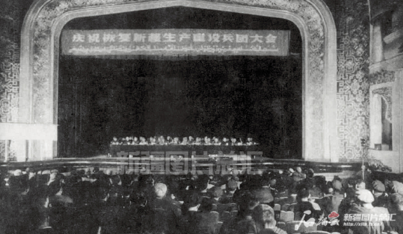1982年6月1日,慶祝恢復新疆生產(chǎn)建設兵團大會在烏魯木齊舉行。新疆圖片總匯資料圖片