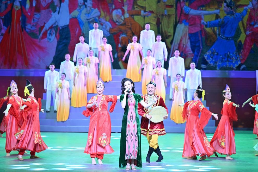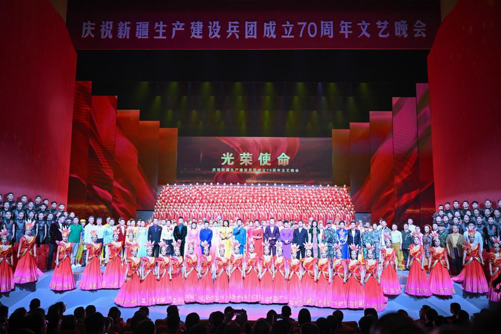 10月6日,慶祝新疆生產(chǎn)建設(shè)兵團成立70周年文藝晚會《光榮使命》在烏魯木齊文化中心大劇院舉行。
