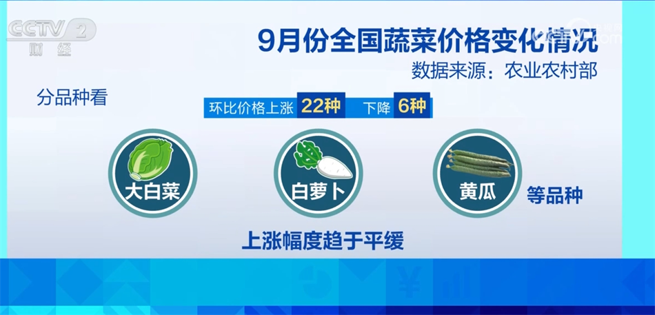 專家表示,9月份全國蔬菜在田面積同比增長1.9%,處于年內(nèi)較高水平,穩(wěn)產(chǎn)基礎(chǔ)好,預(yù)計后期蔬菜價格逐步轉(zhuǎn)入季節(jié)性下行。
