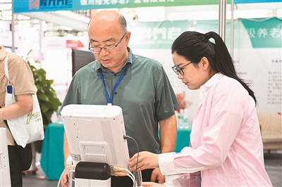 2024寧夏養(yǎng)老服務(wù)業(yè)博覽會(huì)近日在寧夏銀川市舉辦。本屆博覽會(huì)集中展示國(guó)內(nèi)外養(yǎng)老服務(wù)前沿科技和最新成果,推動(dòng)健康養(yǎng)老產(chǎn)業(yè)向更深層次、更寬領(lǐng)域、更全方位發(fā)展。圖為會(huì)上工作人員向參觀者介紹醫(yī)療產(chǎn)品。新華社記者 毛 竹攝