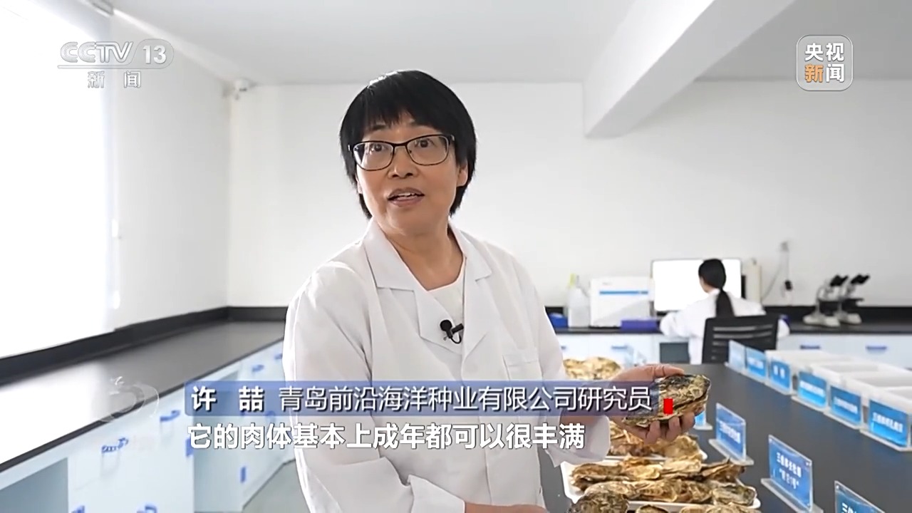 青島前沿海洋種業(yè)有限公司研究員 許喆:“正常的牡蠣都是二倍體,它們兩個(gè)的年齡差不多,二倍體要比三倍體小很多,因?yàn)槿扼w多了一套染色體,繁殖季節(jié)不排漿,它的肉體基本上全年都可以很豐滿,可以提供給大家鮮美的生蠔?!?/p>