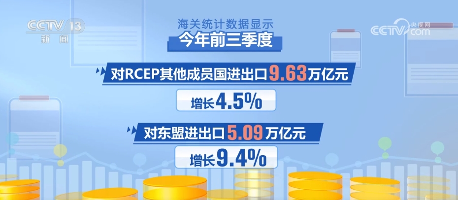 海關(guān)統(tǒng)計數(shù)據(jù)顯示,今年前三季度,我國市場多元化穩(wěn)步推進,與全球160多個國家和地區(qū)貿(mào)易實現(xiàn)增長。對共建“一帶一路”國家進出口15.21萬億元,同比增長6.3%,占比提升至47.1%。對RCEP其他成員國進出口9.63萬億元,增長4.5%,其中對東盟進出口5.09萬億元,增長9.4%。同期,對歐盟、美國分別進出口4.18萬億和3.59萬億元,分別增長0.9%、4.2%。