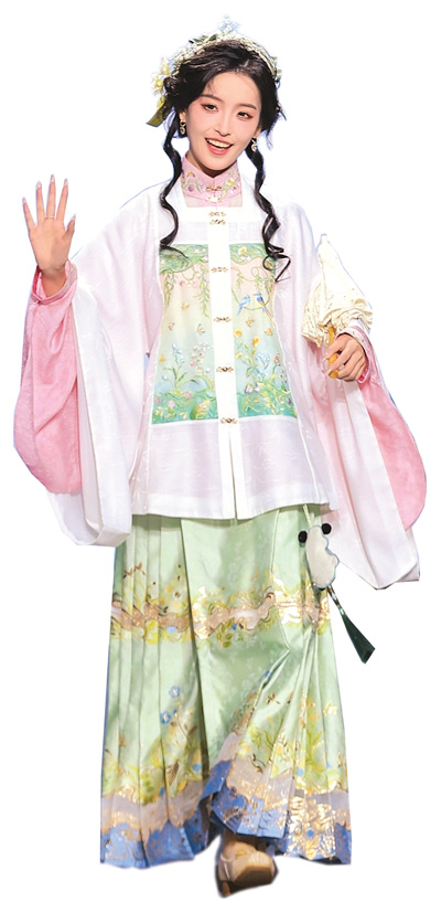 “除馬面裙外,目前市面上由宋制服裝中的褙子改良而來的服裝樣式也很受歡迎,明制服裝中的立領(lǐng)則被大量應(yīng)用于新中式服裝。”戴雨晴說,如今的漢服已兼具傳統(tǒng)文化和流行時尚的雙重屬性。