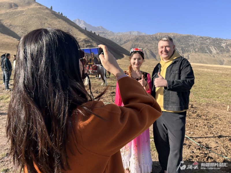 10月21日,“中國有約·相約新疆”2024國際媒體采訪活動走進阿克蘇地區(qū),來自俄羅斯、意大利、比利時等9個國家的自媒體創(chuàng)作者們,來到位于托木爾峰腳下的天山托木爾景區(qū)·塔村,感受這里的旅游熱度。