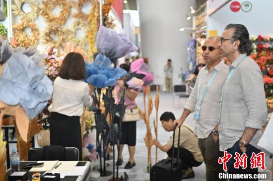 第136屆廣交會(huì)第二期的園林用品展區(qū)吸引采購(gòu)商(左)咨詢洽談。