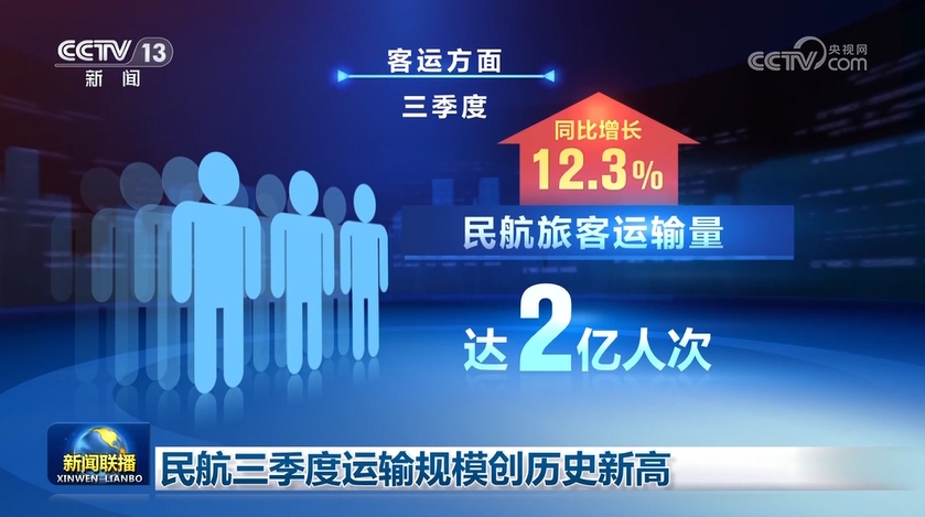 記者從中國(guó)民航局了解到,今年三季度民航全行業(yè)共完成運(yùn)輸總周轉(zhuǎn)量403.5億噸公里,同比增長(zhǎng)19.8%。客貨運(yùn)規(guī)模創(chuàng)歷史新高。