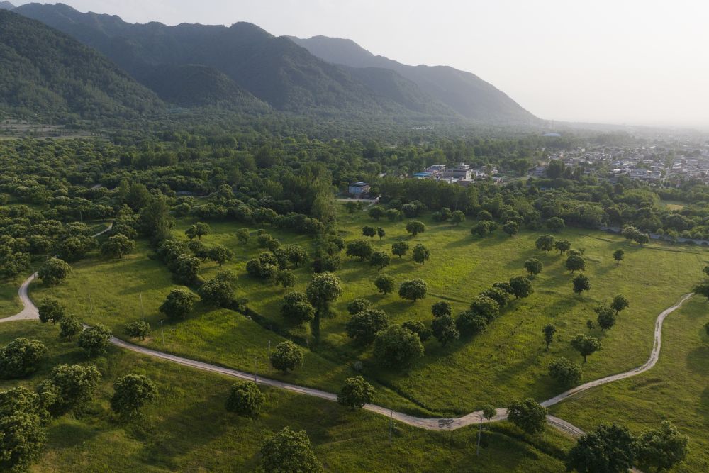 西安市長安區(qū)子午街道南豆角村的板栗古樹群(2024年5月15日攝,無人機照片)。新華社記者 邵瑞 攝