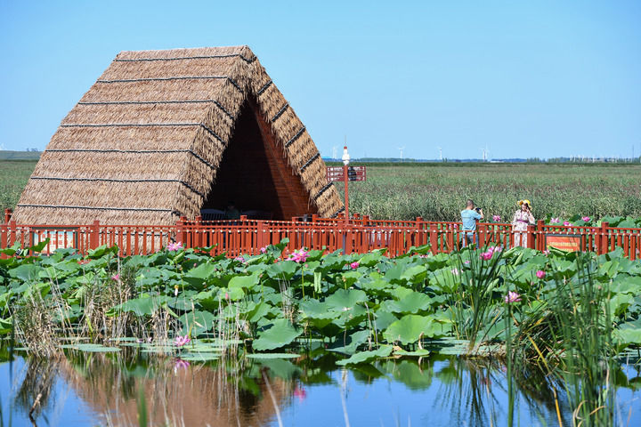 2024年8月26日,游客在查干湖參觀游覽。新華社記者 張楠 攝