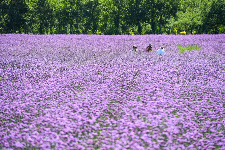 2024年8月26日,游客在查干湖花海拍照留念。新華社記者 張楠 攝