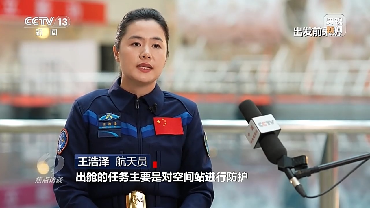 航天員 王浩澤:出艙的任務(wù)主要是對(duì)空間站進(jìn)行防護(hù)。因?yàn)樵诳臻g里面運(yùn)行,空間站它有可能會(huì)受到微流星、空間碎片干擾,甚至是沖擊,所以我們要對(duì)艙外的一些重要管路、設(shè)備進(jìn)行防護(hù)。