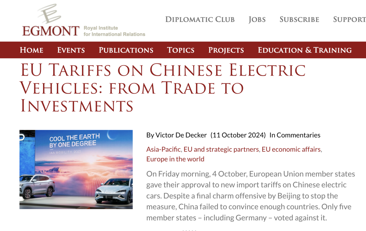 德德克10月11日文章《歐盟對中國電動汽車的關(guān)稅:從貿(mào)易到投資》截圖