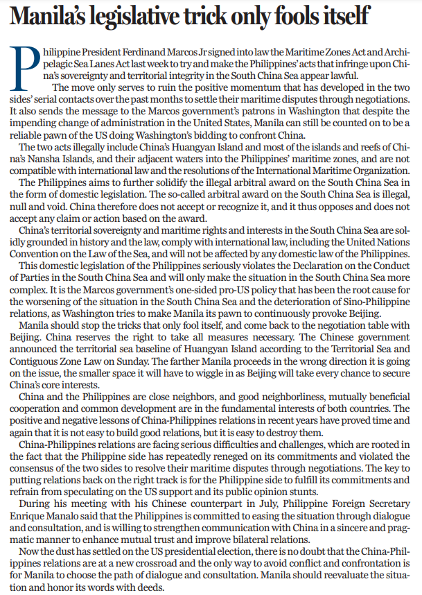 原文標(biāo)題:Manila's legislative trick only fools itself